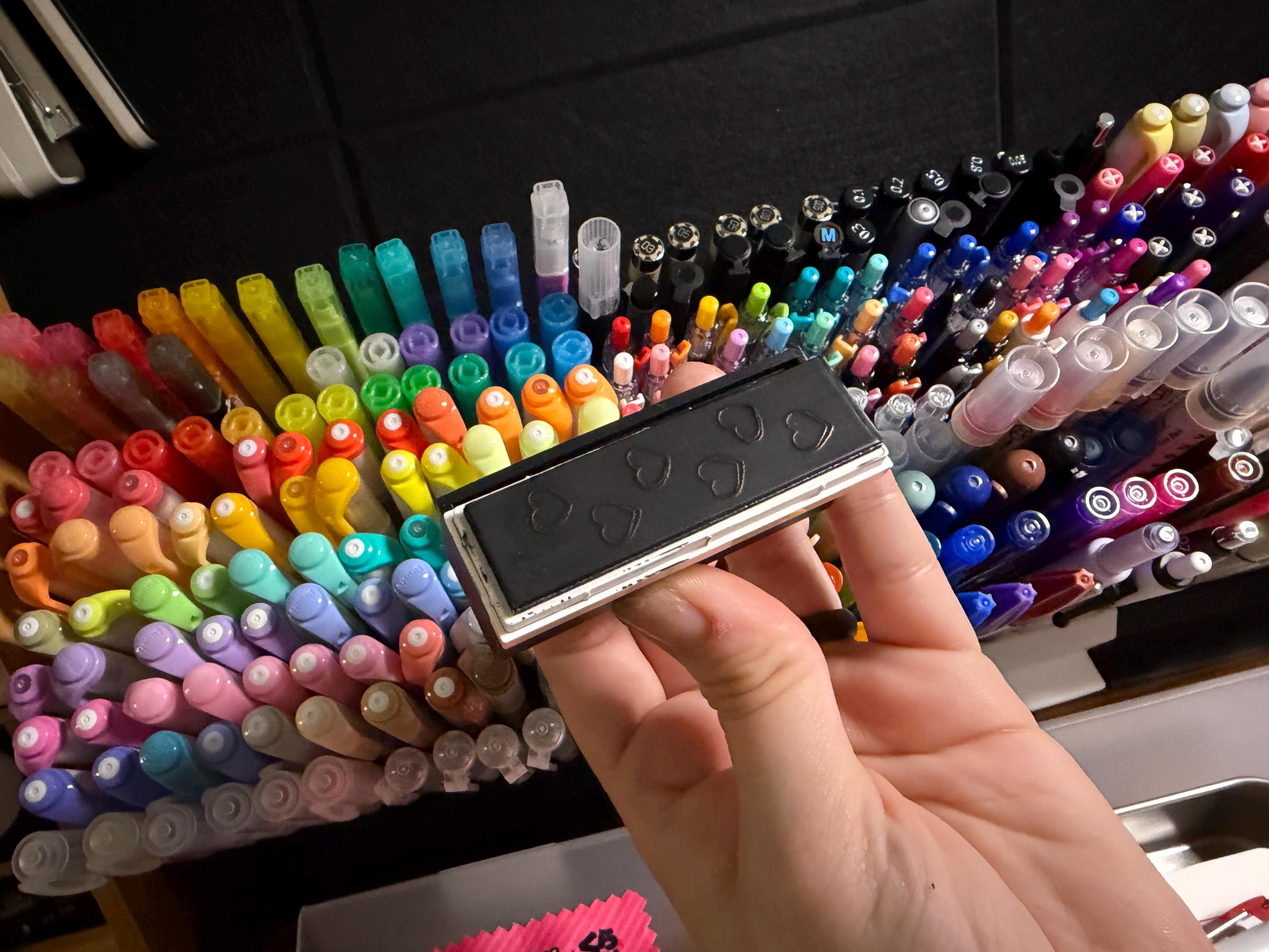 This Valentine’s Candy Heart Stamp Set includes both self-inking stamps—the bold conversation heart and the candy heart strand—so you can mix, match, and fully commit to the chaos.