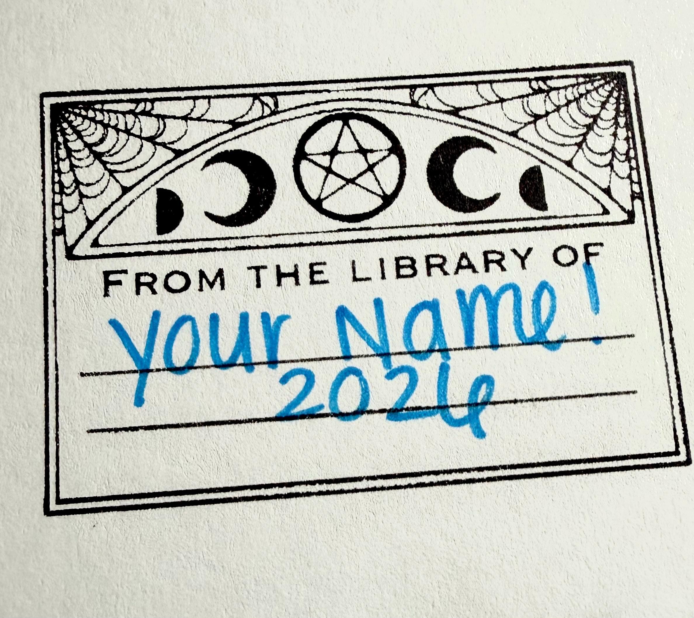 Framed with crescent moons and a pentacle border, this design feels like it belongs in a candlelit study filled with spellbooks and pressed herbs.